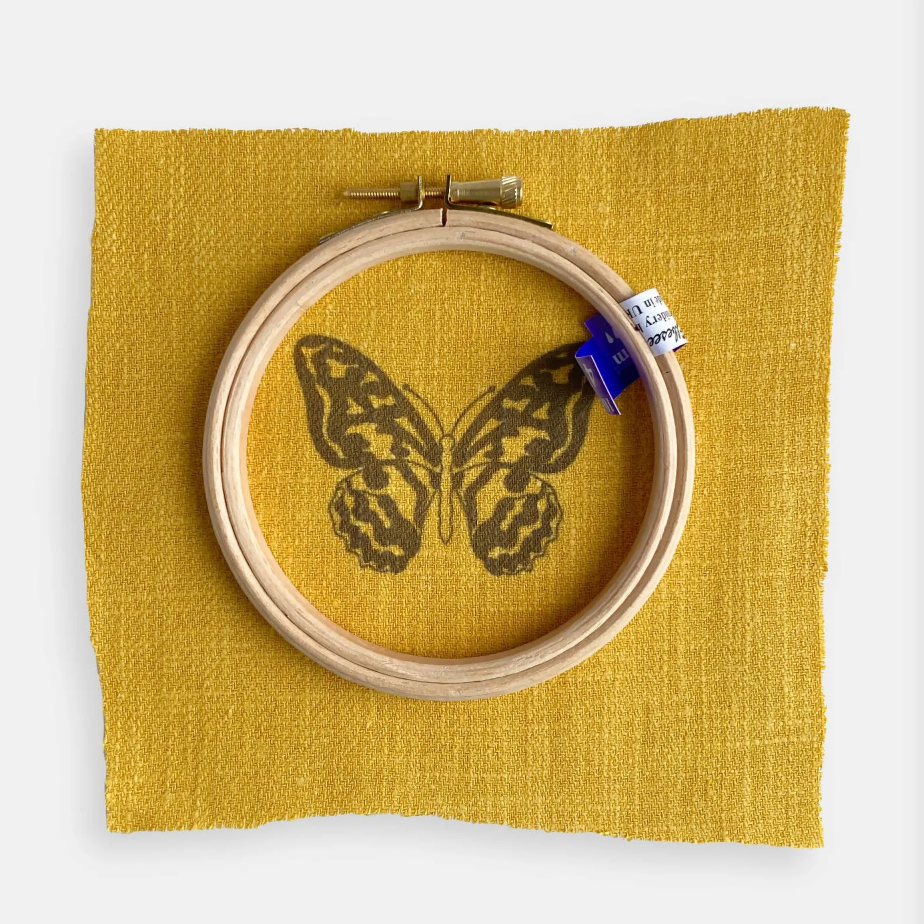 Off White OR Mustard Yellow Linen Fabric with Pre-Printed Design Outline