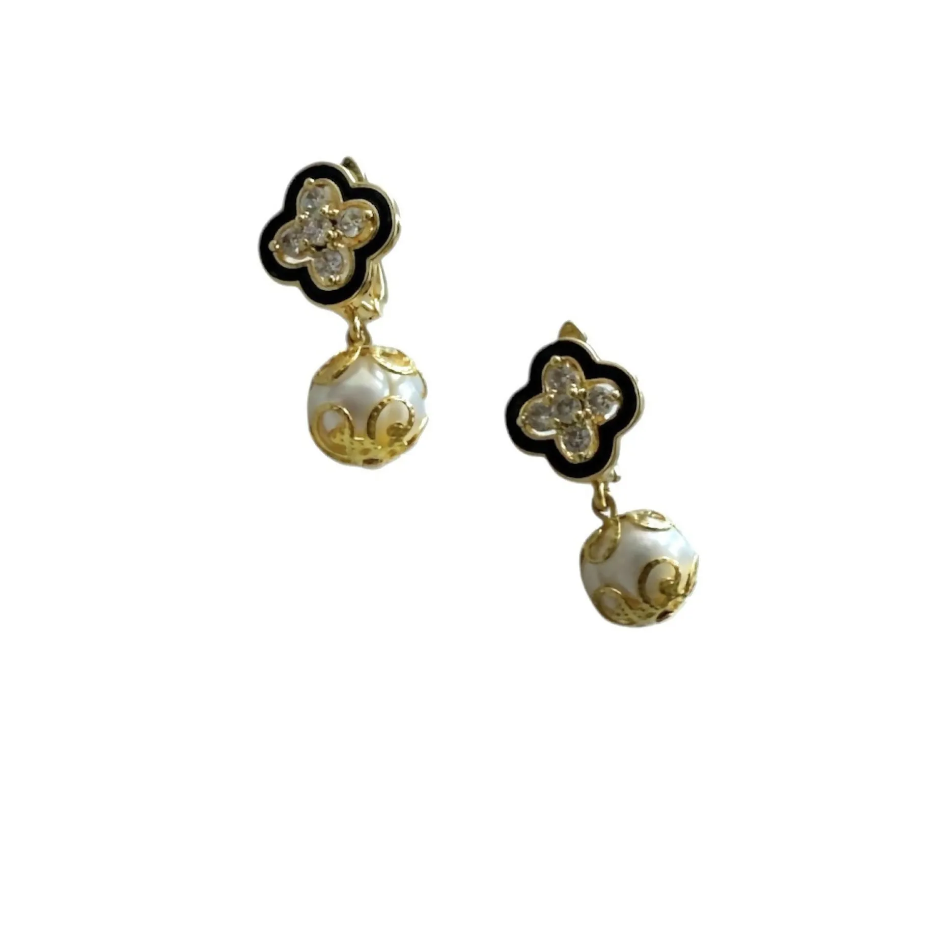 ✔ Black enamel clover flower design with 18K gold rhodium finish