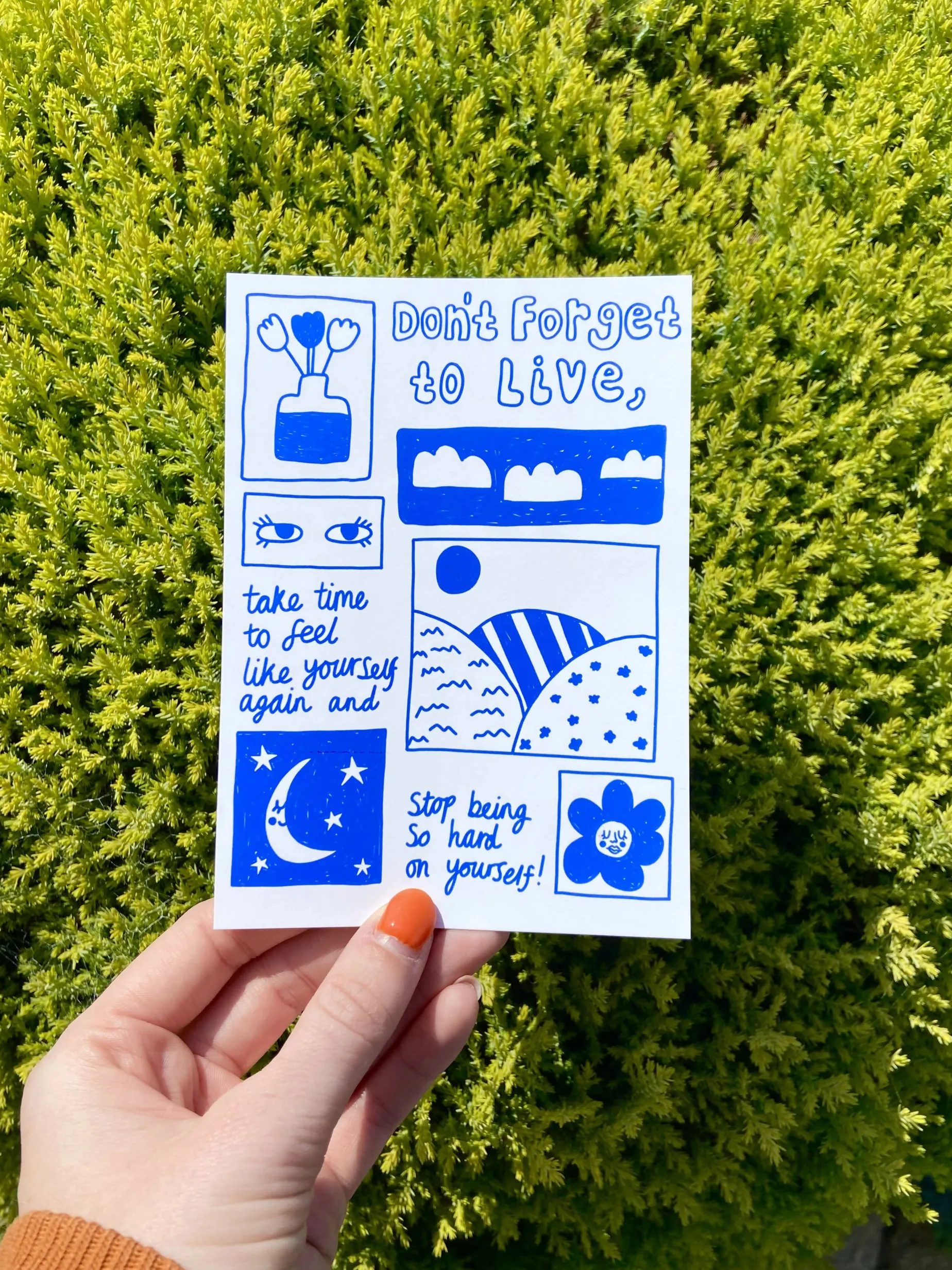 Printed postcard with a hand drawn design
