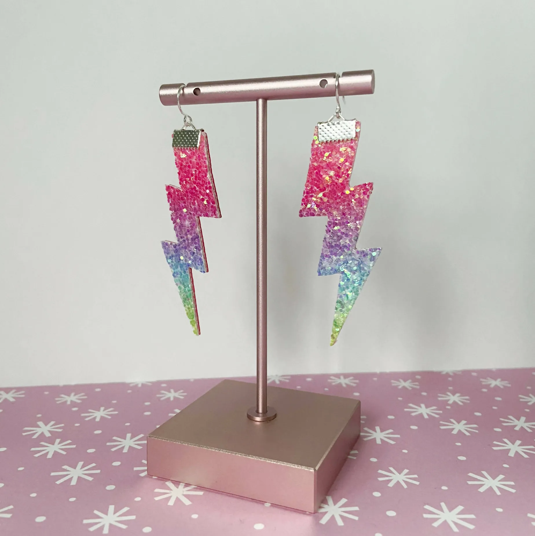 Be the first to review “Flash Lightning Bolt Earrings in Rainbow Glitter” Cancel reply