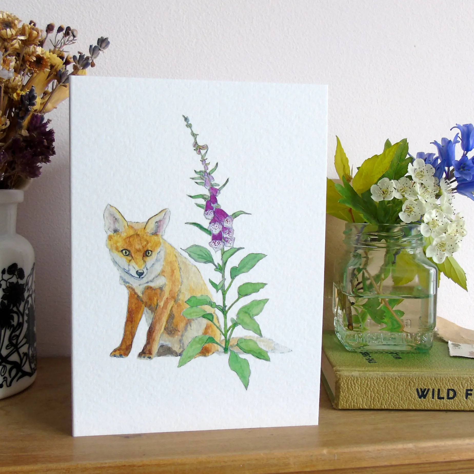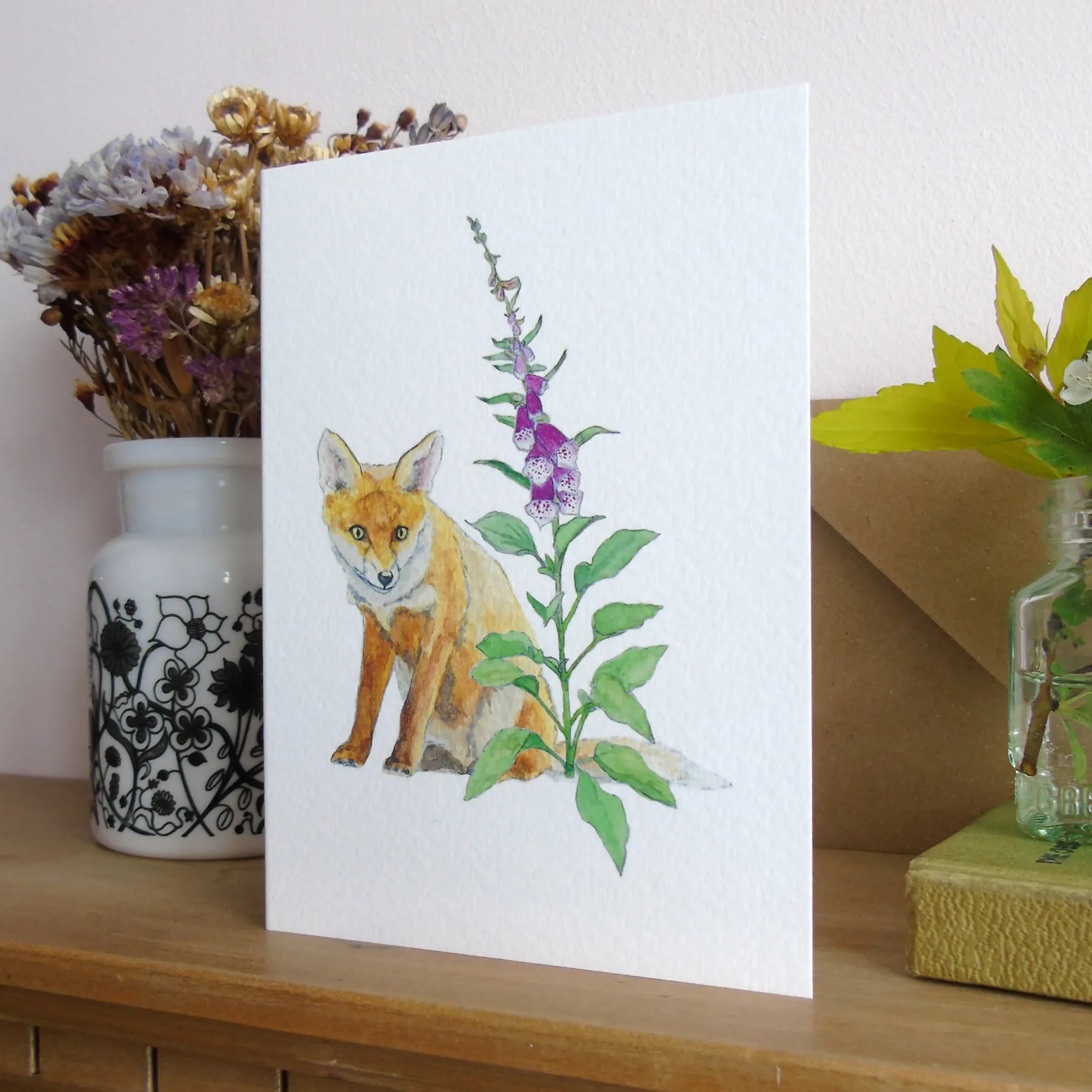 My watercolour painting of a fox who visits my sister’s garden in York printed onto tintoretto gesso card stock for a luxurious feel.