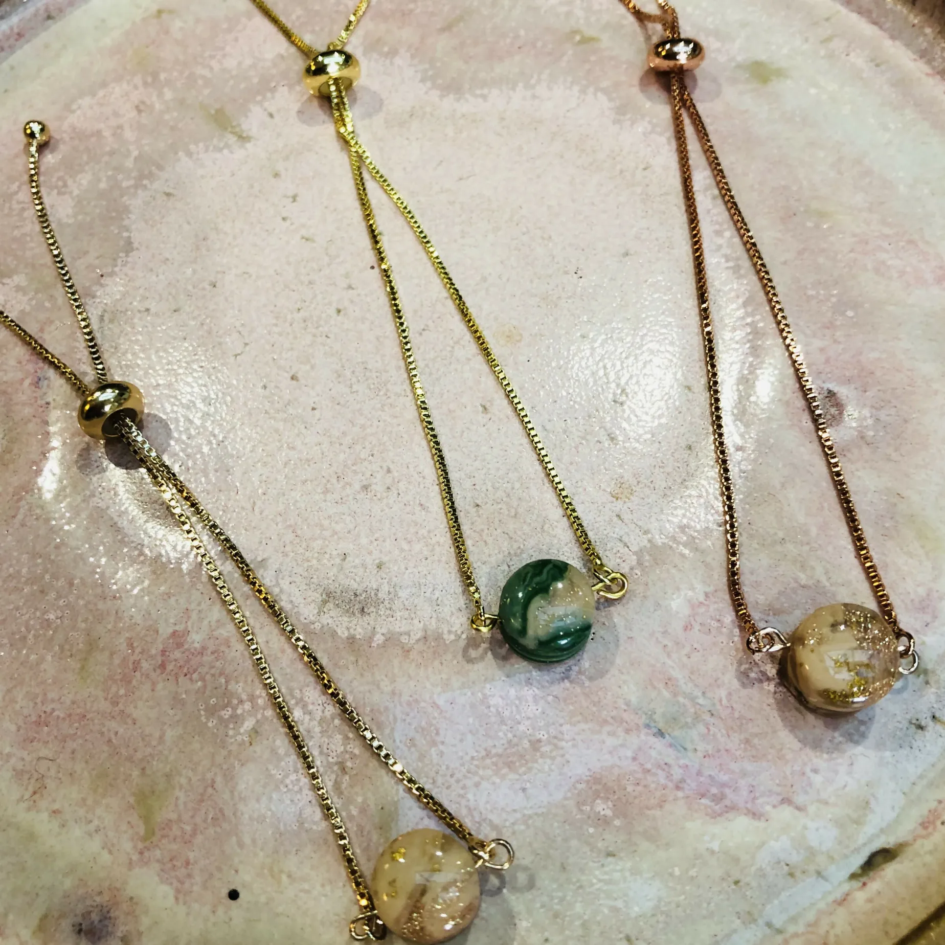 Hand crafted, small batch, polymer clay bracelet with adjustable slider.