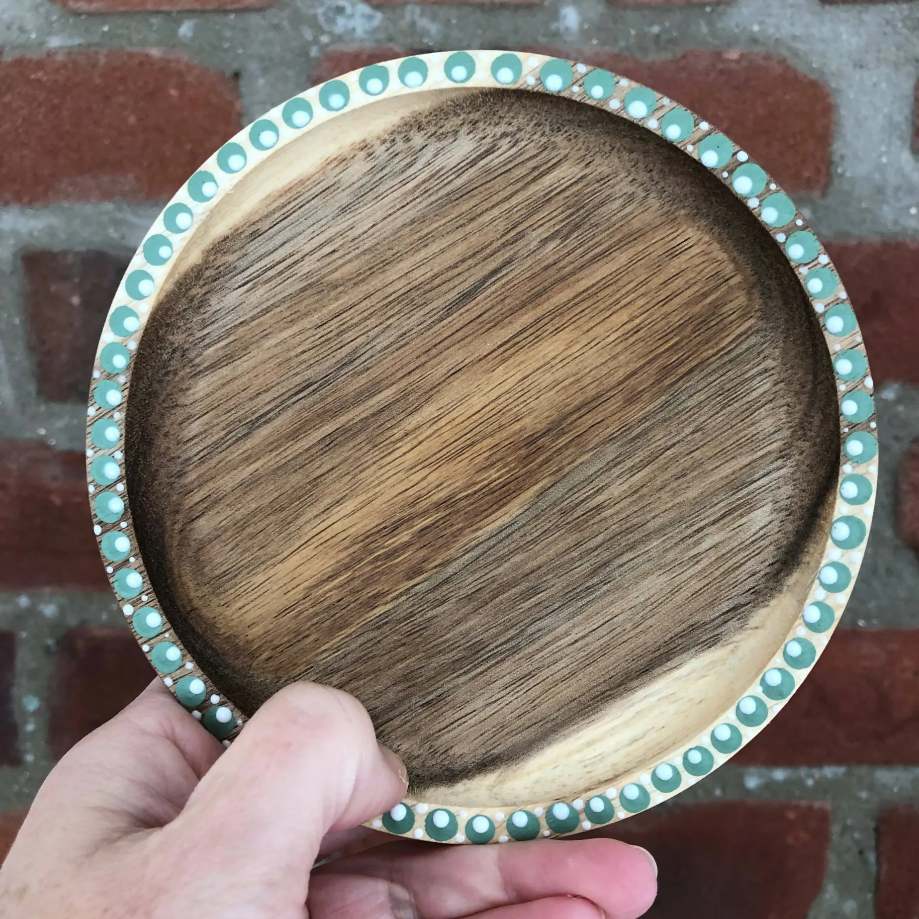 A beautiful Wooden Trinket Tray, hand painted with dot mandala pattern and 3D embellishment using Crystal Drops in Pure White for added detail. Various colour ways available.