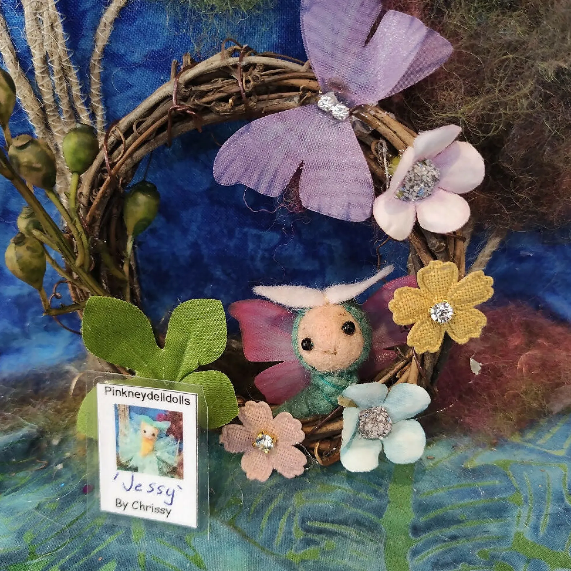 Adorable, Hand crafted decorative Bug-in-a-Wreath ornament from Pinkneydelldolls. Ideal gift or collector’s item. (NOT a TOY), Made from Felt, Wool, Cotton, Wood and Artificial decorations. Height is 10cm.