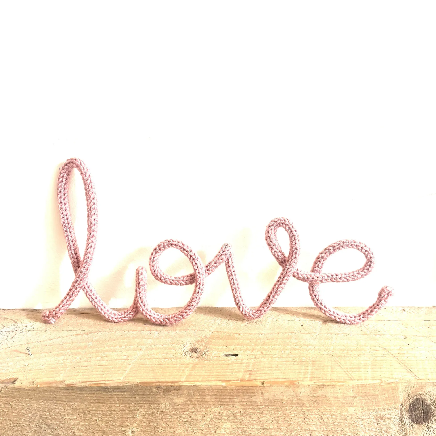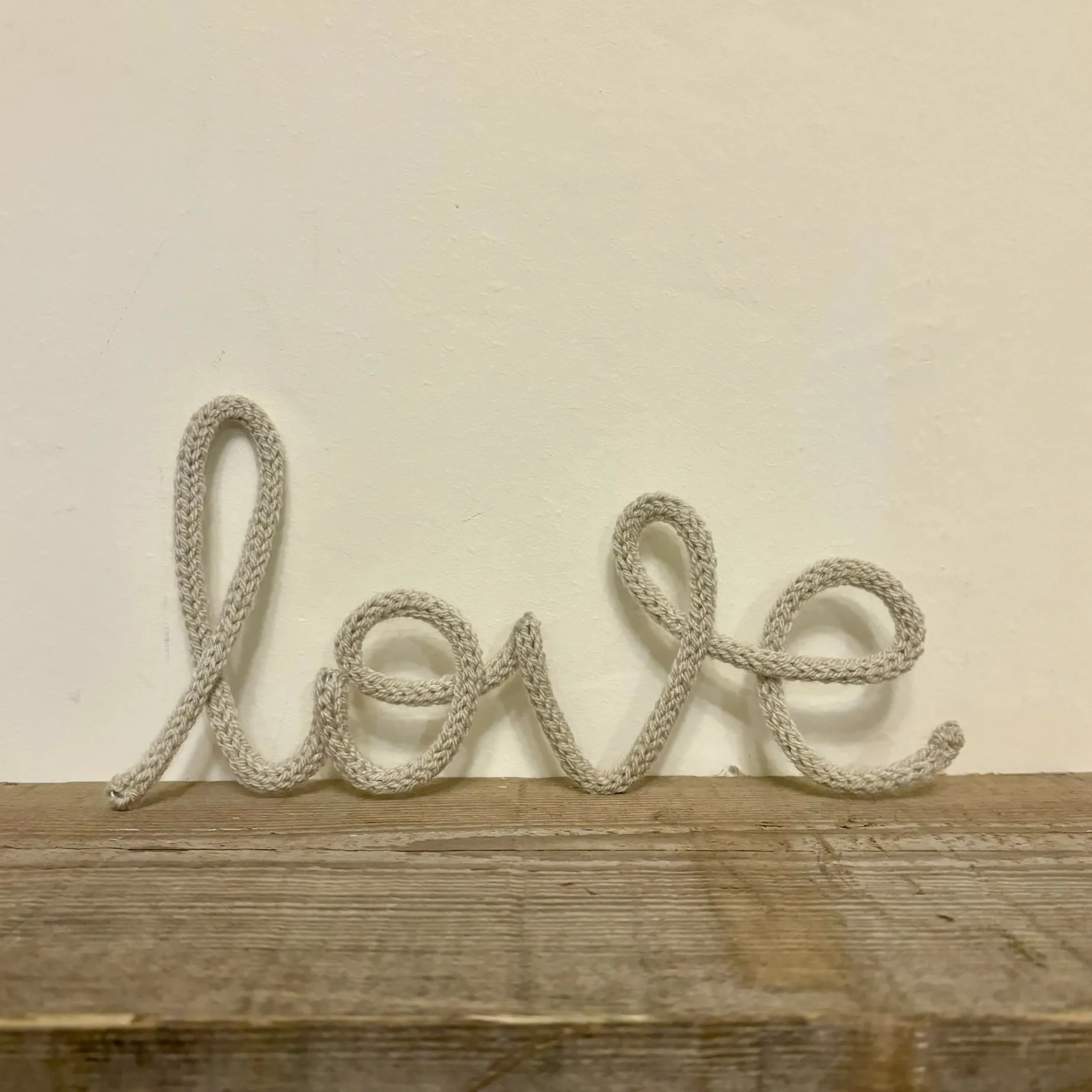 ‘Love’ Woolly wire word decoration. Each decoration is hand made so may vary slightly, but will measure approximately 13cm x 29cm.