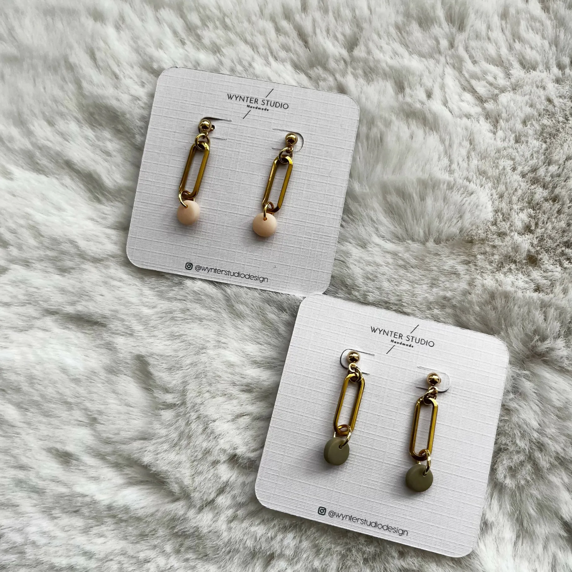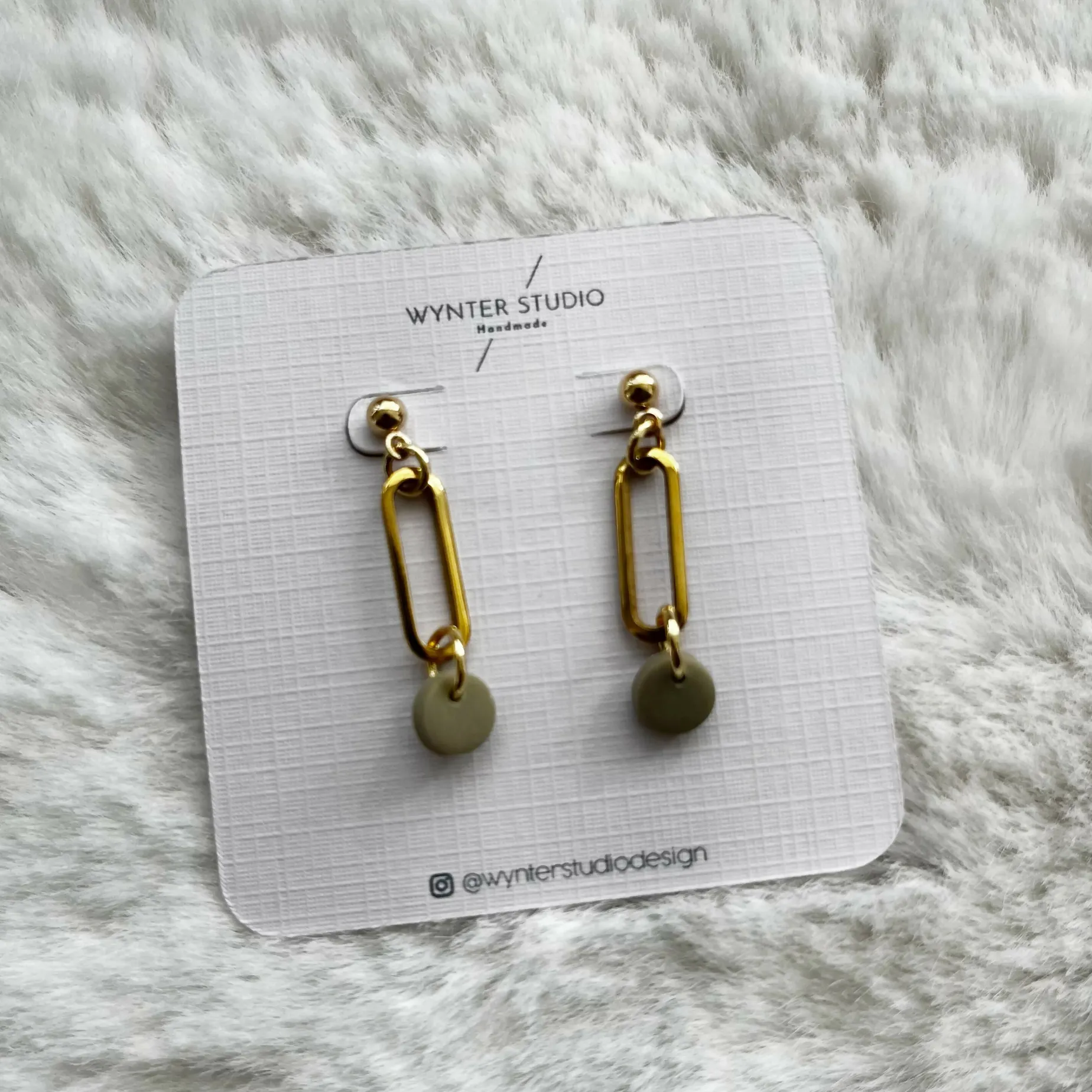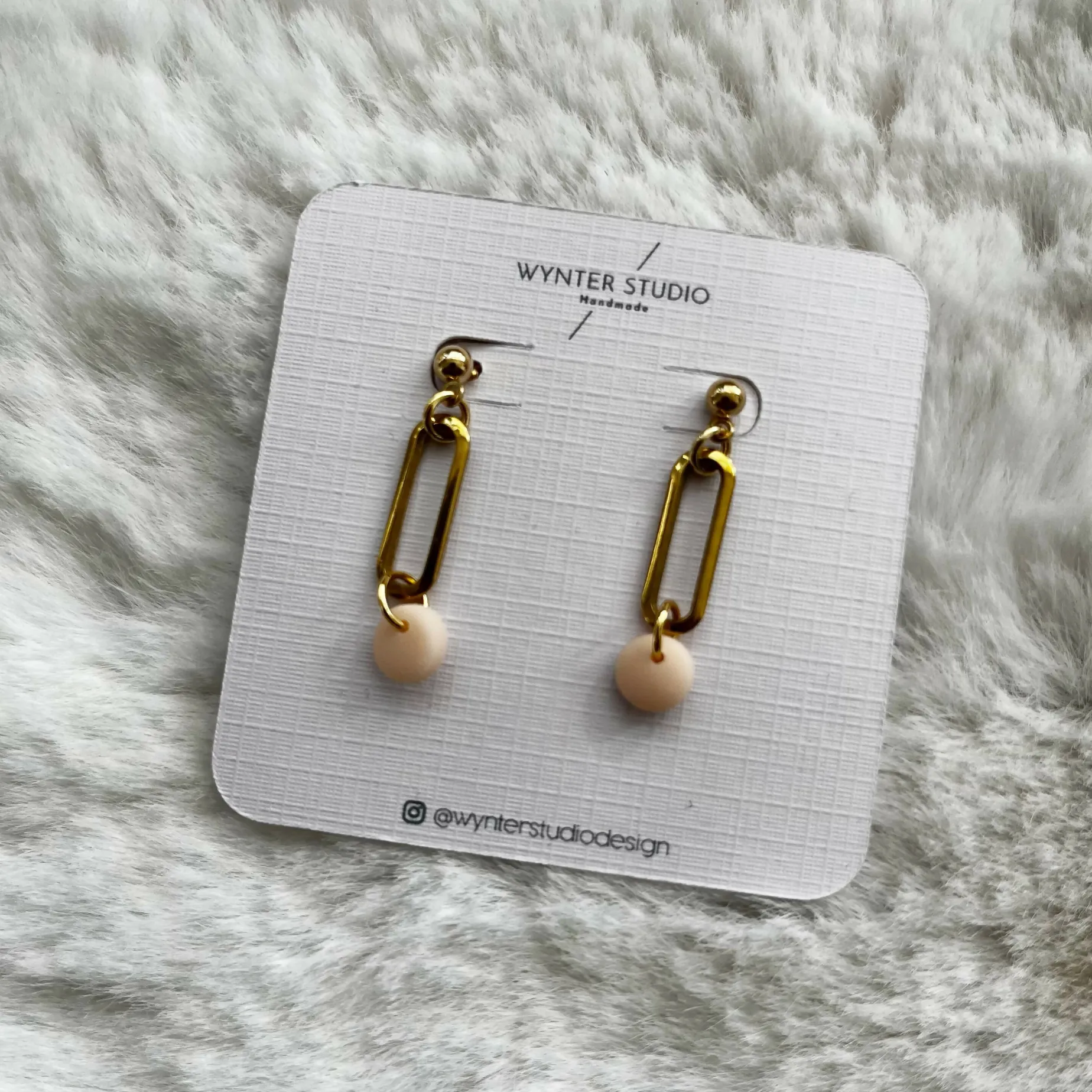 These dainty oval earrings are handmade with a clay bead in choice of colours.