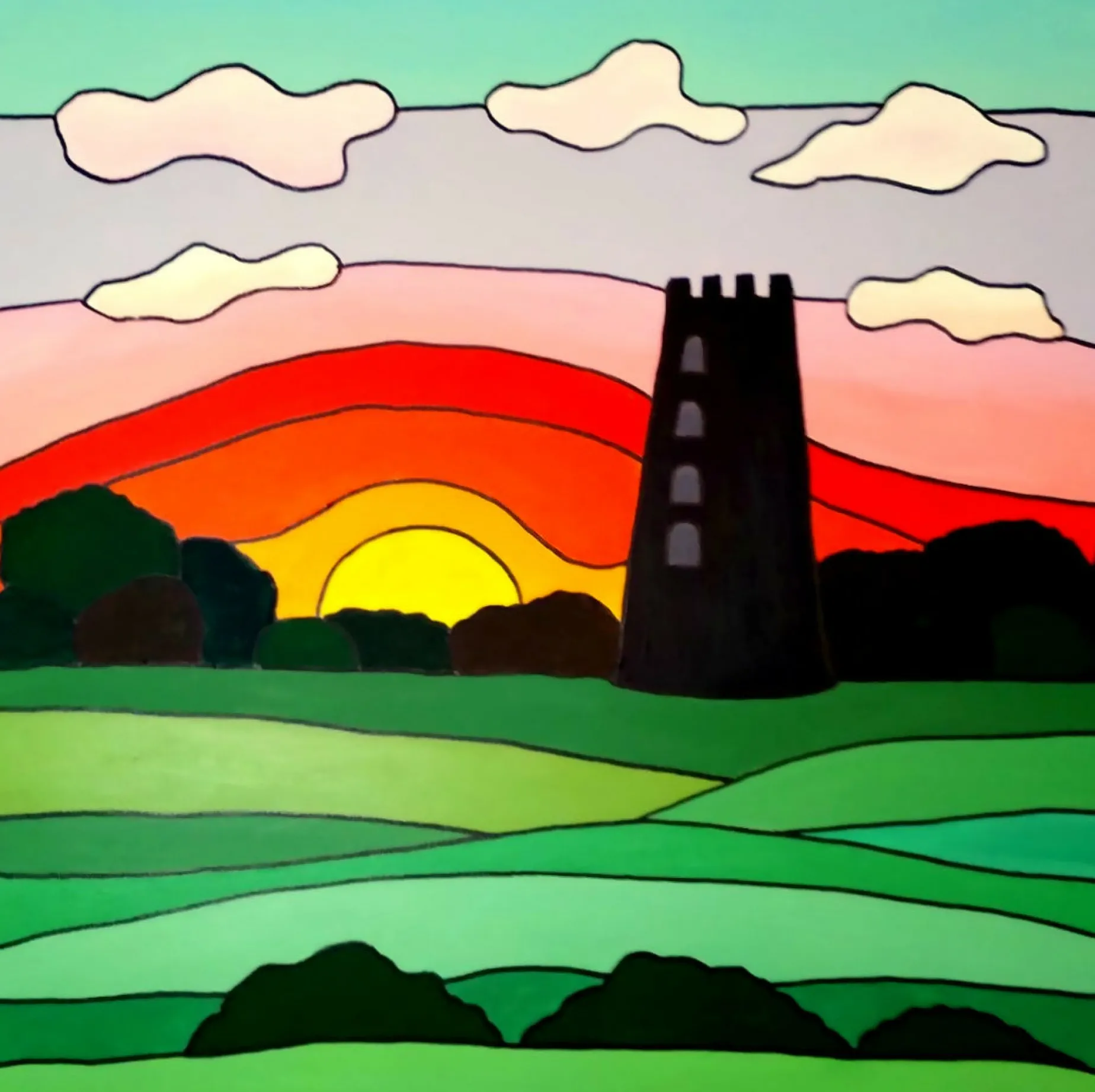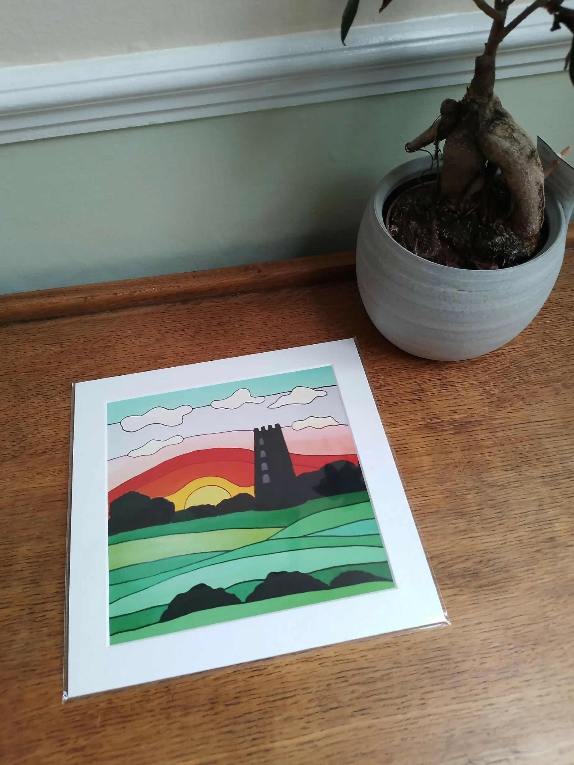 Mounted print of original painting “Sunset at Black Mill, Beverley” in a clear display cover. Measures 10″ by 10″