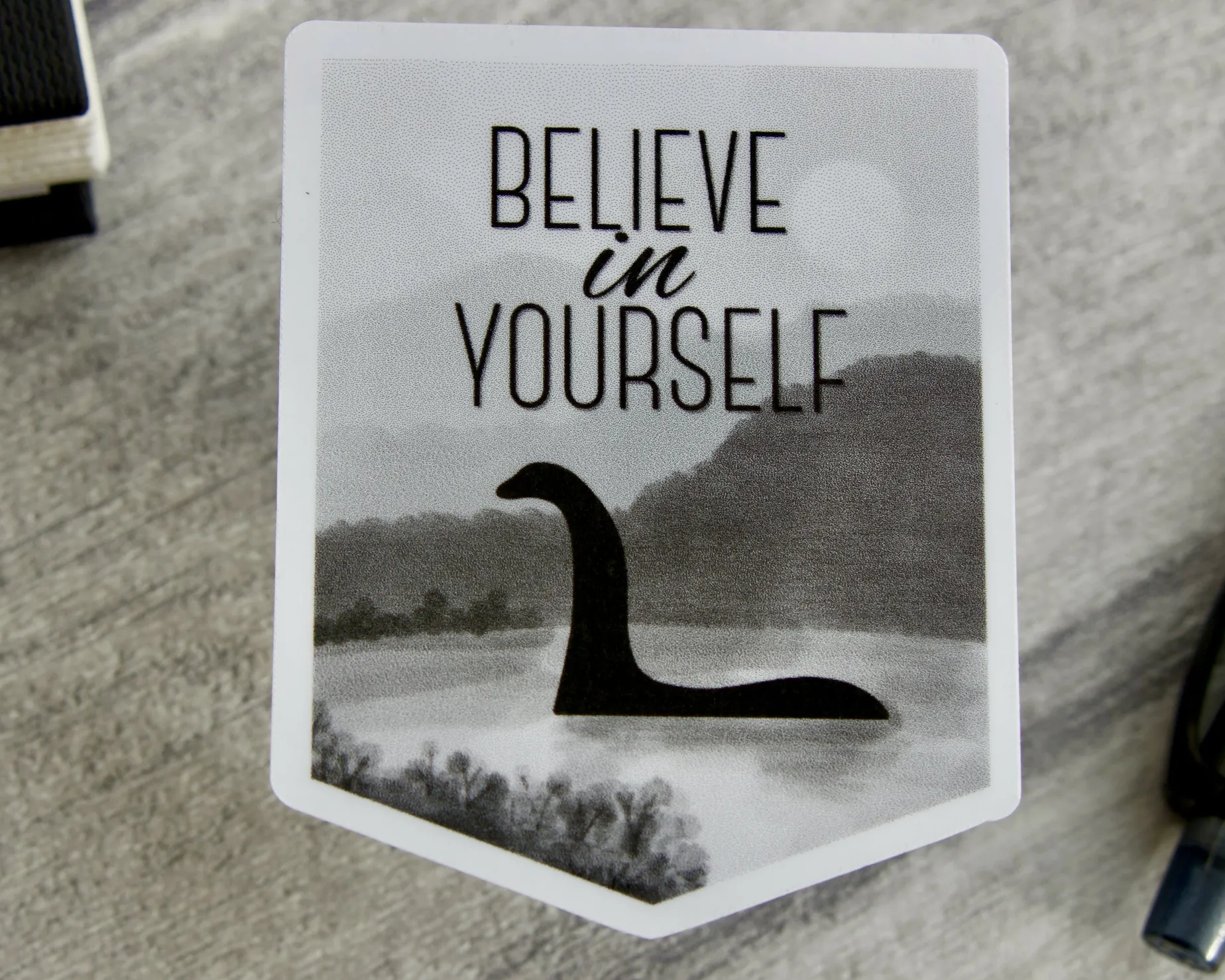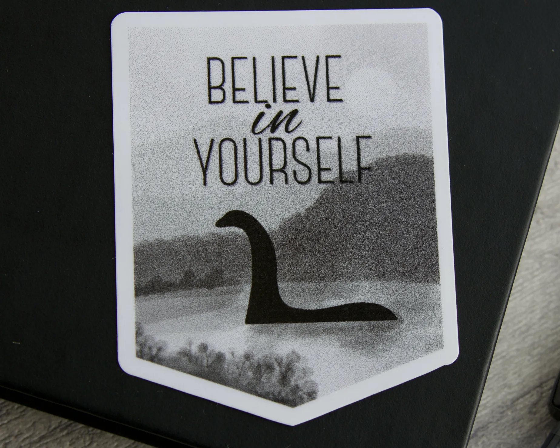 Believe in Yourself vinyl sticker featuring the Loch Ness Monster
