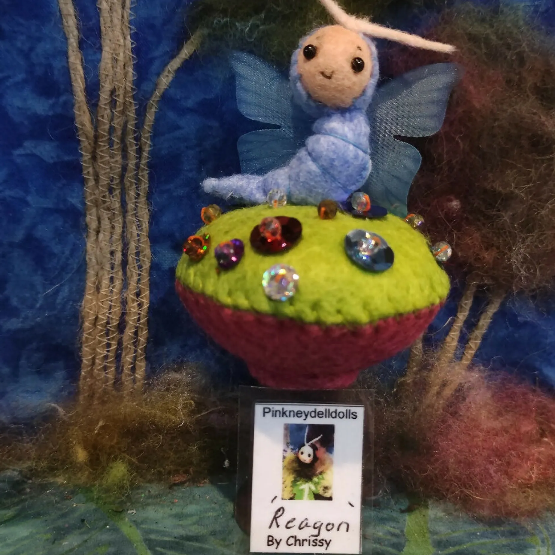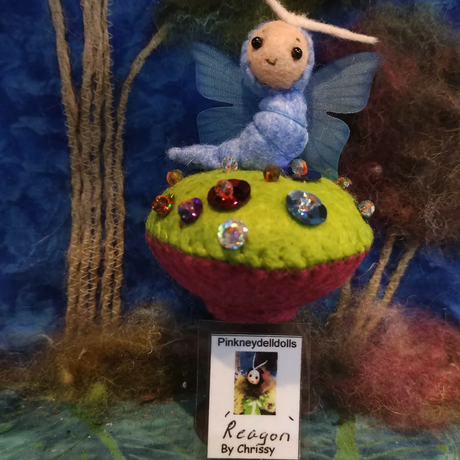 Hand crafted decorative Bug-on-a-Beaded Shroom ornament from Pinkneydelldolls. Ideal gift or collector’s item. (NOT a TOY), Made from Felt, Wool, Cotton, Wood and Artificial decorations. Height is 12cm.