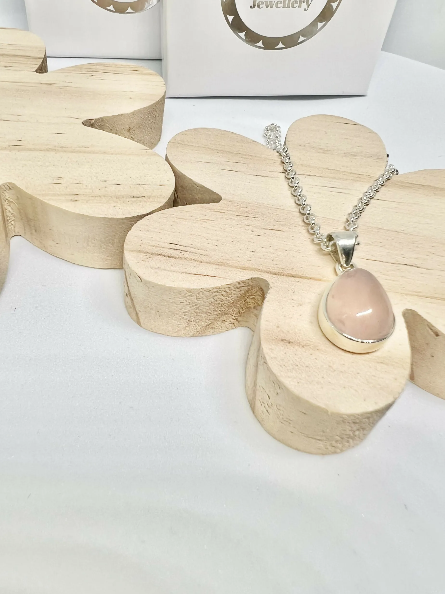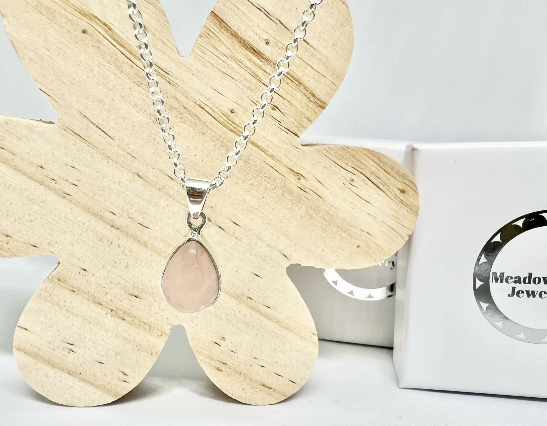 Rose Quartz teardrop necklace on an 18” sterling silver chain