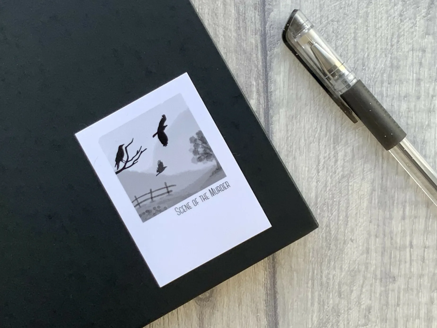 This vinyl Scene of the Murder crow sticker is approximately 5×6.9cm in size and water resistant
