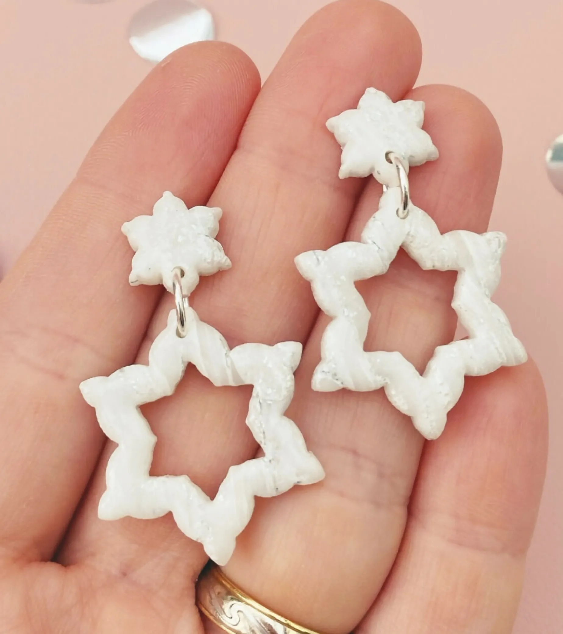 Handcrafted from marbled polymer clay and set on silver plated, hypoallergenic earring posts. Lead & nickel free.
