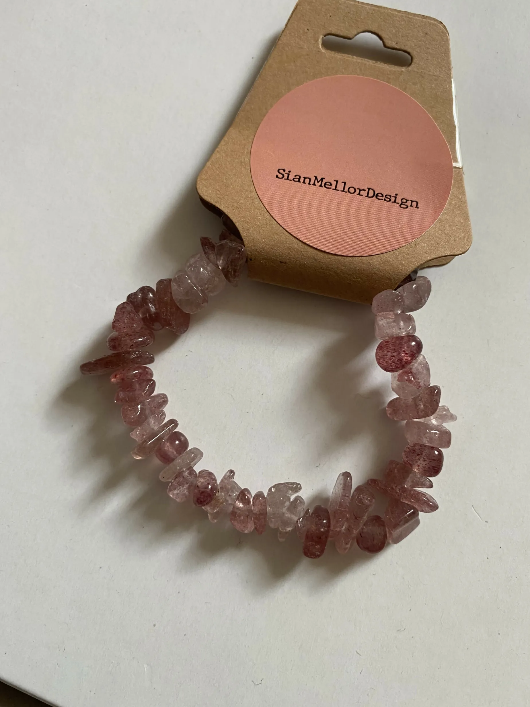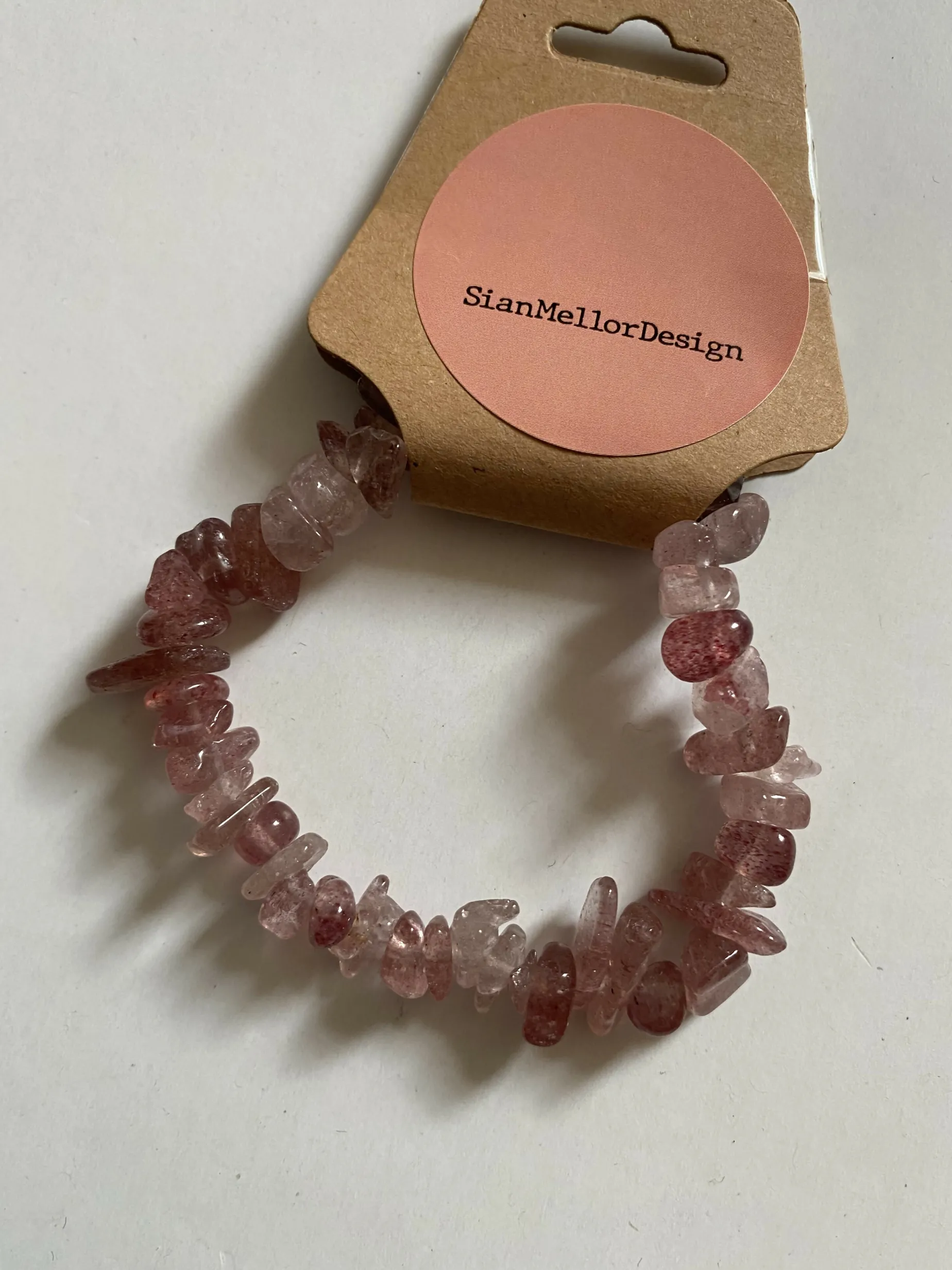 Pretty bracelet made with strawberry quartz chipped stones.