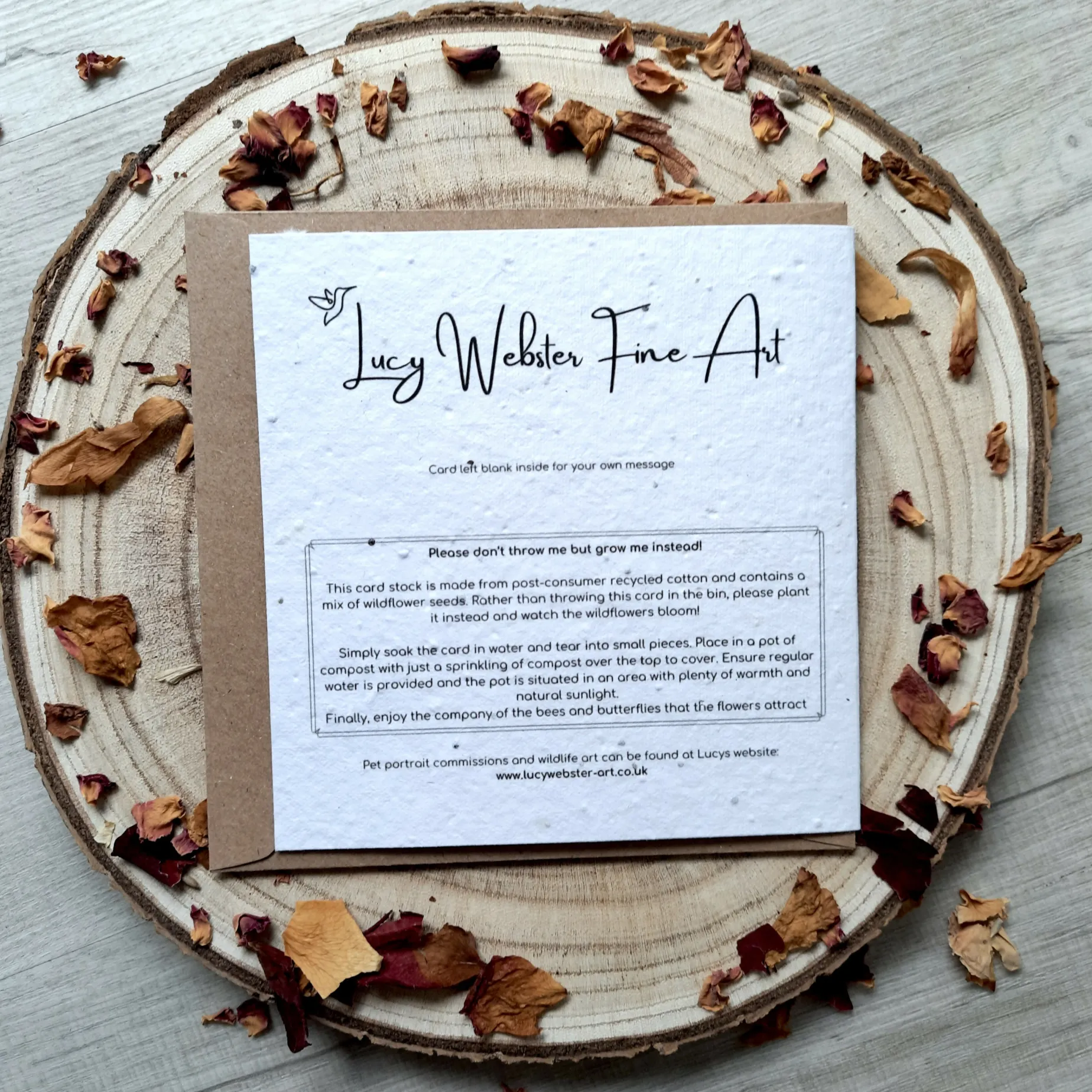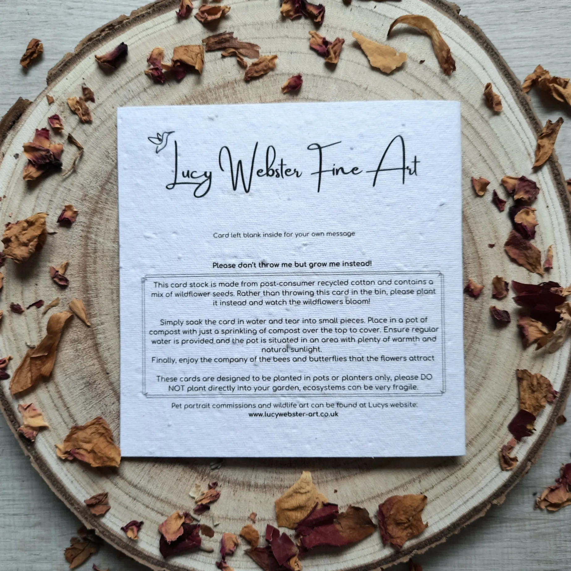 Each card is square, 15x15cm, in size and is left blank inside for you to write your own message. There are planting instructions on the back of each card.