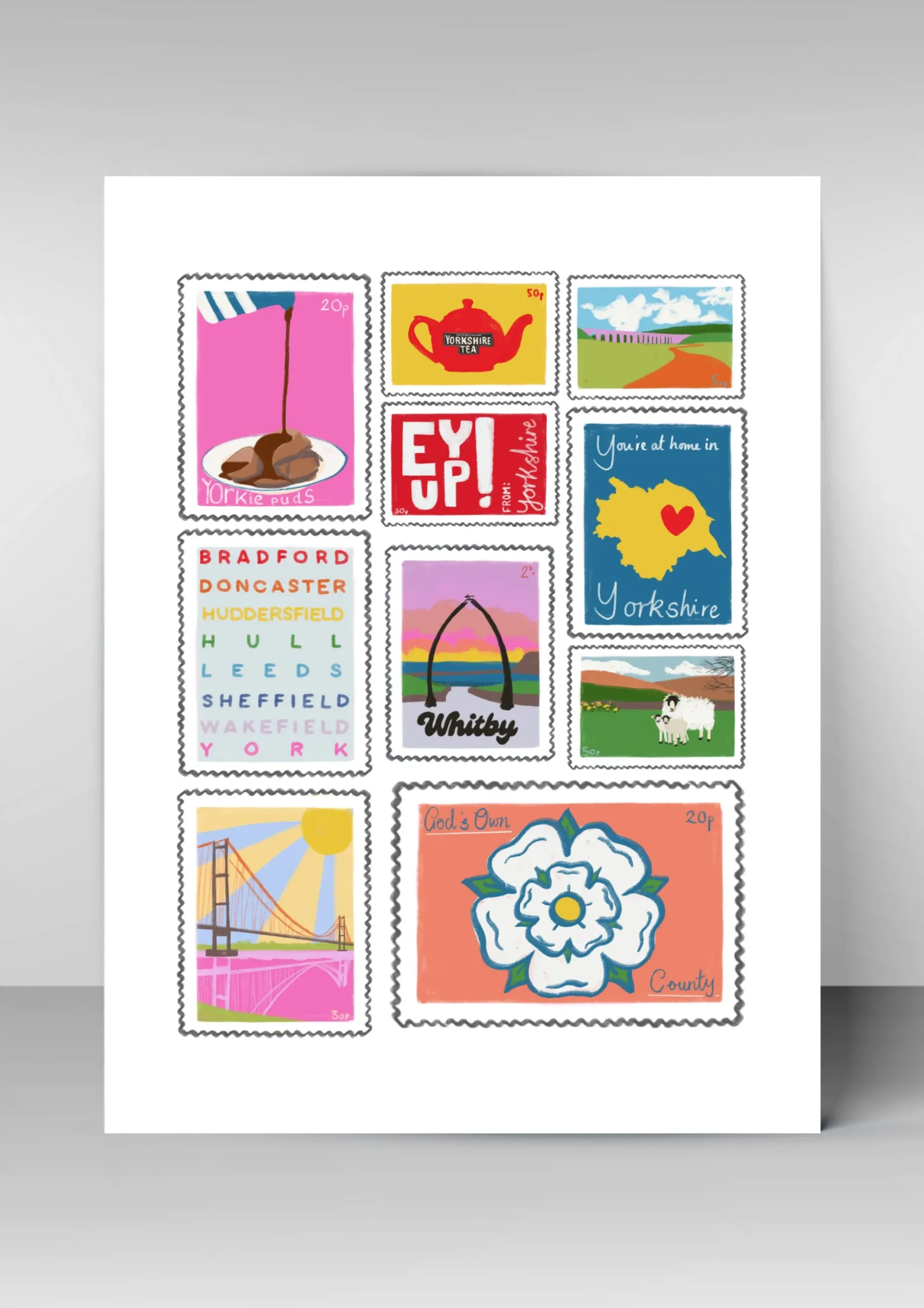 Incorporating Yorkshire’s most famous and favourite things, this print is a celebration of Yorkshire!